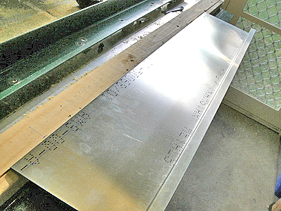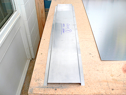 on the brake to facilitate the double bends. Bend the outer flange first in the normal way, then fit the timber spacer with the slot to take the first flange, then do the second bend. See accompanying photos.